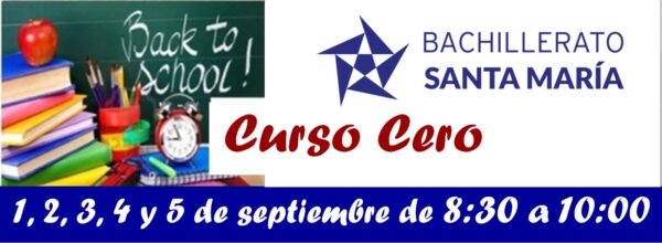 El 1 de septiembre comienza en el bachillerato Santa María el “CURSO CERO”, que se desarrollará durante el 1, 2, 3, 4 y 5 de septiembre de 8:30h a 10:00h.  El “CURSO CERO” da la opción a los alumnos y a las alumnas...