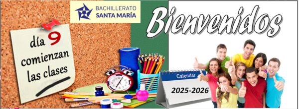 ¡BIENVENIDOS! Un saludo a todos los que por primer o segundo curso, estaréis con nosotros en este Bachillerato Santa María, desde ahora, vuestro Bachillerato. ¡SED, PUES, MUY BIENVENIDOS!  El próximo martes, día 9 de septiembre, nos vemos....